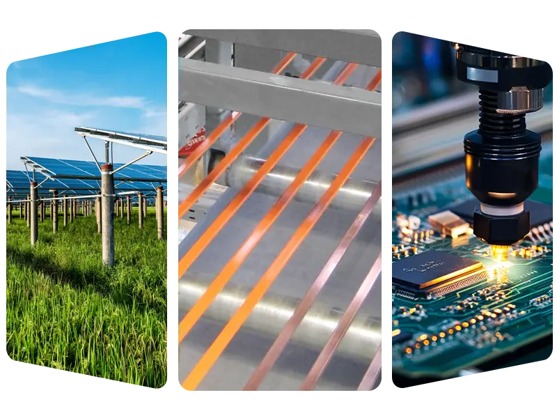 • फोटोव्होल्टेइक फील्ड: घटकांना वीज कार्यक्षमतेने चालवण्यास मदत करण्यासाठी फोटोव्होल्टेइक वेल्डिंग रिबन आणि बसबारचे मोठ्या प्रमाणात उत्पादन.